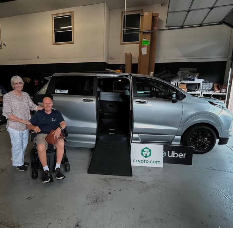 The Solution: John discovered the Bryan Williams Wheelchair Vans grant initiative. By applying for the subsidy provided by Uber and Crypto.com, John was able to bypass the high interest rates of bank loans. He secured a second, fully equipped NEMT van at nearly 50% off the market price, settling the transaction securely through the Crypto.com platform.